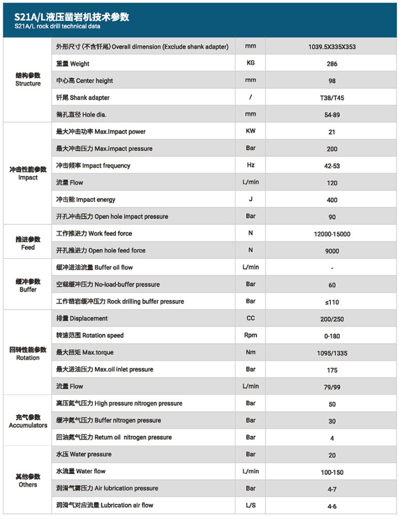 S21A/L是一款專業(yè)級重型液壓沖擊式鑿巖機,專為中深孔鉆探作業(yè)而研發(fā)。該機型配備獨立回轉系統(tǒng)和單獨沖洗功能,內置強大的緩沖系統(tǒng),確保在各種復雜工況下的穩(wěn)定表現(xiàn)。