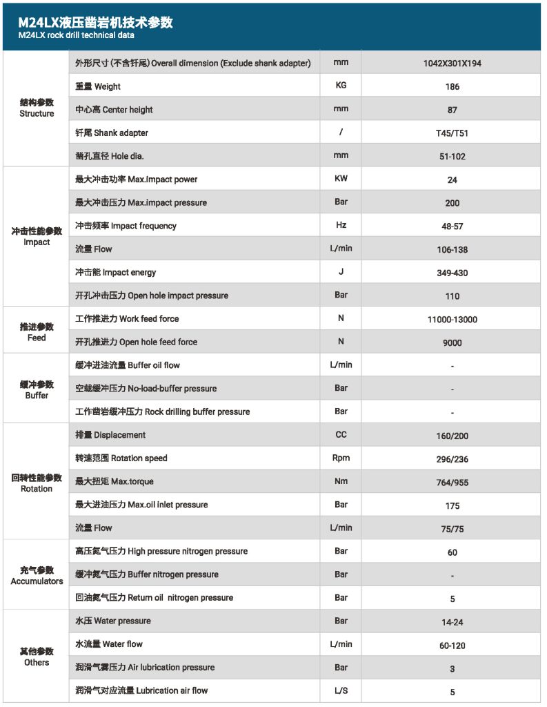M24LX是一款井下通用的全配置高性能液壓鑿巖機,配備液壓防卡釬裝置。在井下作業(yè)中主要應用于深孔鉆進、錨桿支護及常規(guī)鉆孔作業(yè)